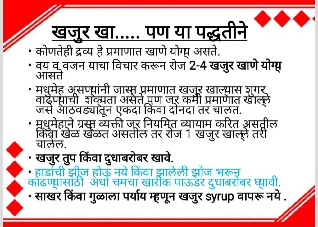 •ज्यांचे गुढगे दुखतात, किंवा ज्यांच्या हाडांमध्ये fracture किंवा tear झाले आहे त्यांच्यासाठी तर खजुर वर्दानच आहे.